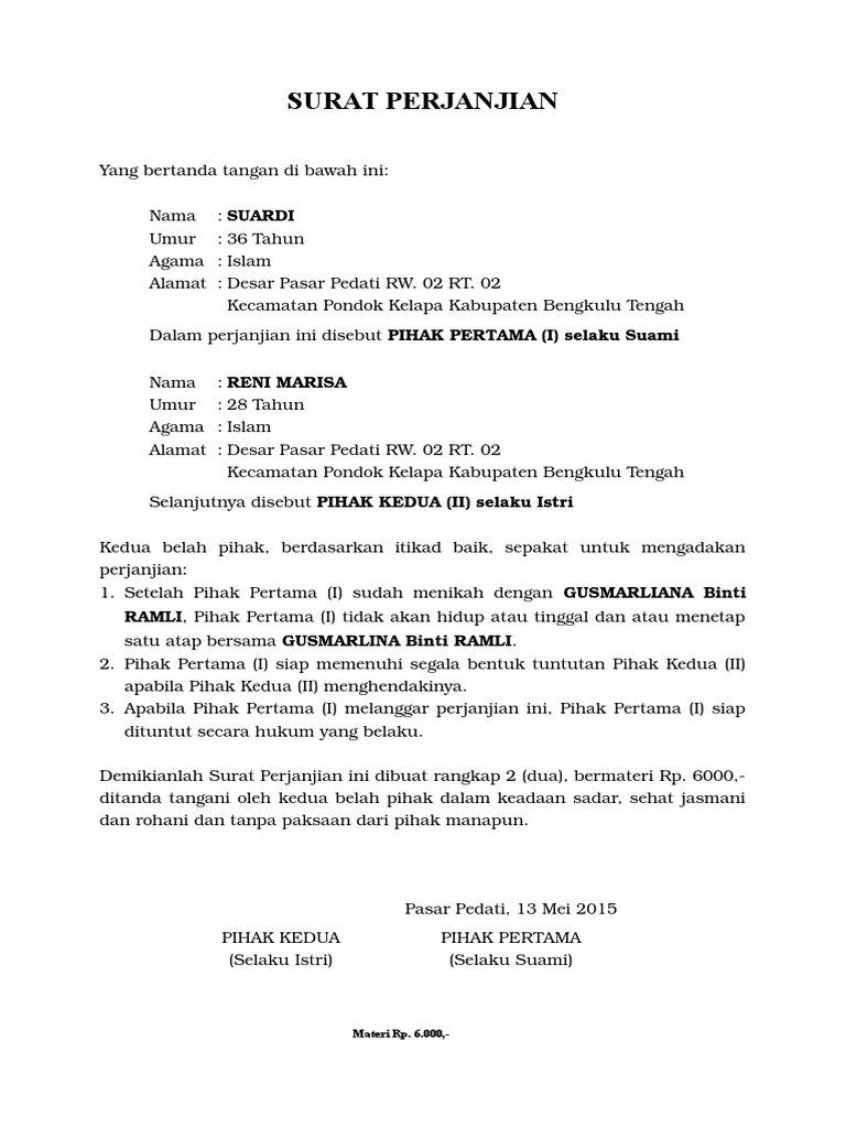 Contoh surat pernyataan pra nikah Contoh Surat Perjanjian Pra Nikah Dan Apa Saja Yang Perlu Di Perhatikan